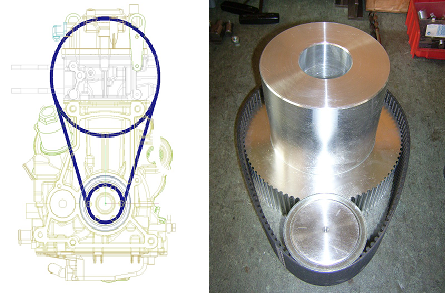Wir arbeiten an einer Zahnriemen-Getriebelösung für unseren Motor M800ULT. Das Getriebe kann auch für andere Motore bis 110 KW verwendet werden.